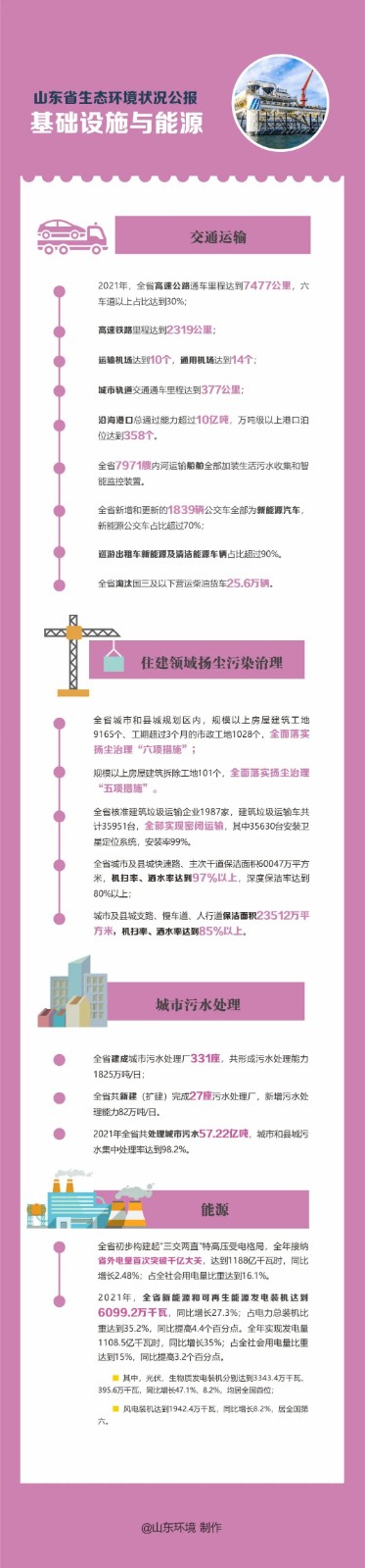 6月6日,省政府新聞辦舉行新聞發(fā)布會,發(fā)布《2021年山東省生態(tài)環(huán)境狀況公報》。2021年,全省生態(tài)環(huán)境質(zhì)量持續(xù)改善,達到有監(jiān)測記錄以來的更好水平,生態(tài)環(huán)境保護實現(xiàn)“十四五”起步之年良好開局。